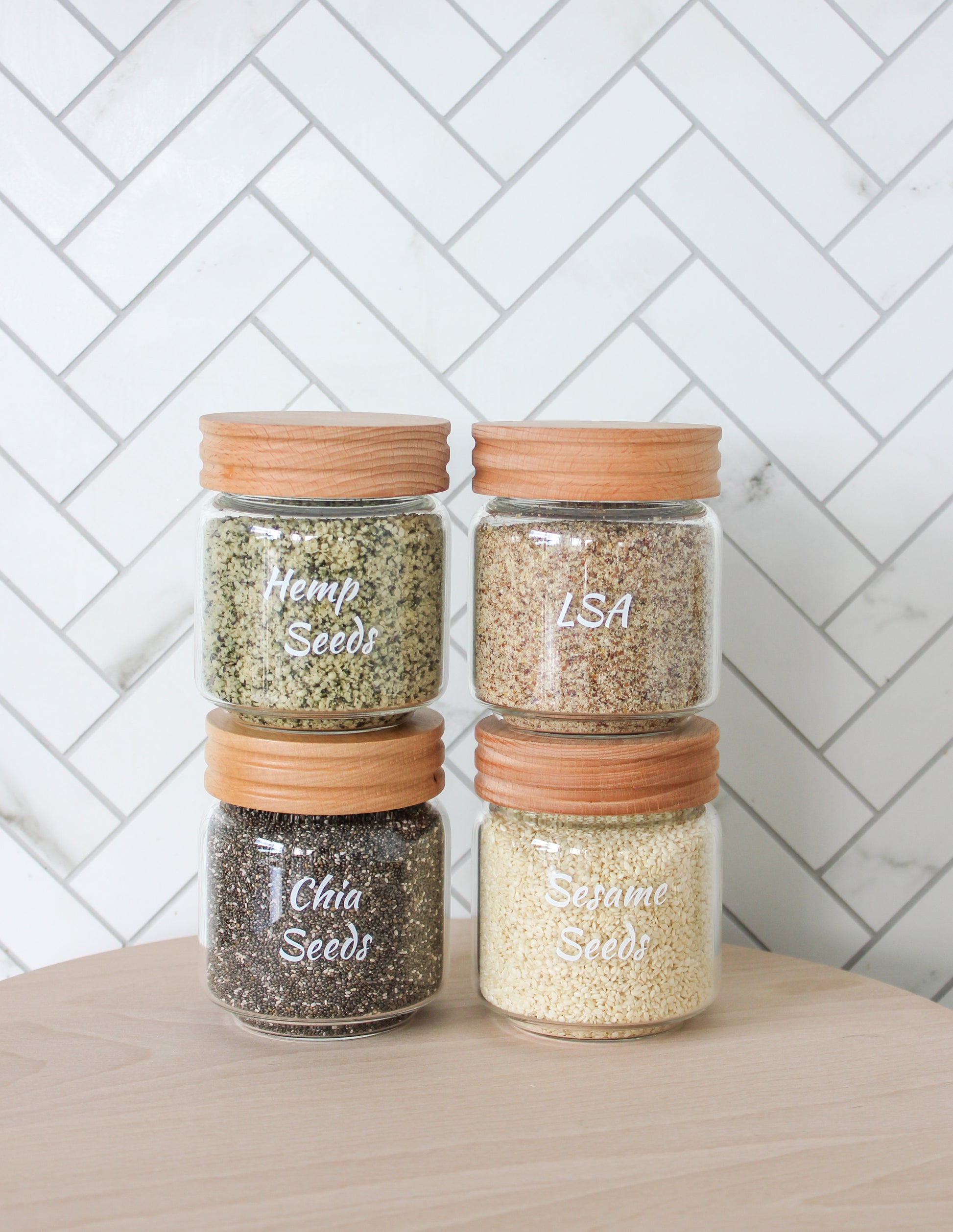 Herb & Spice Jars - hand wash lid only. Recommended dry goods only