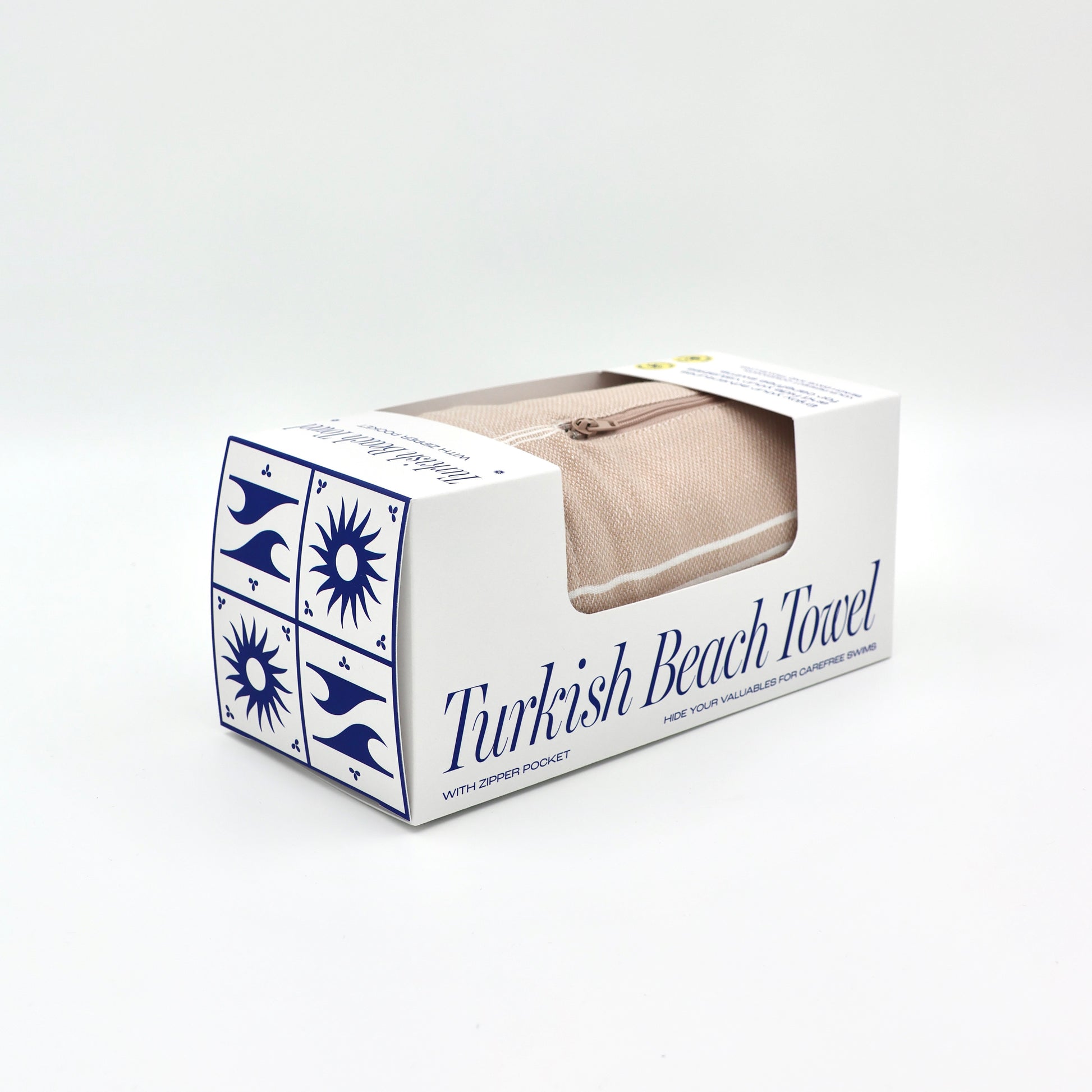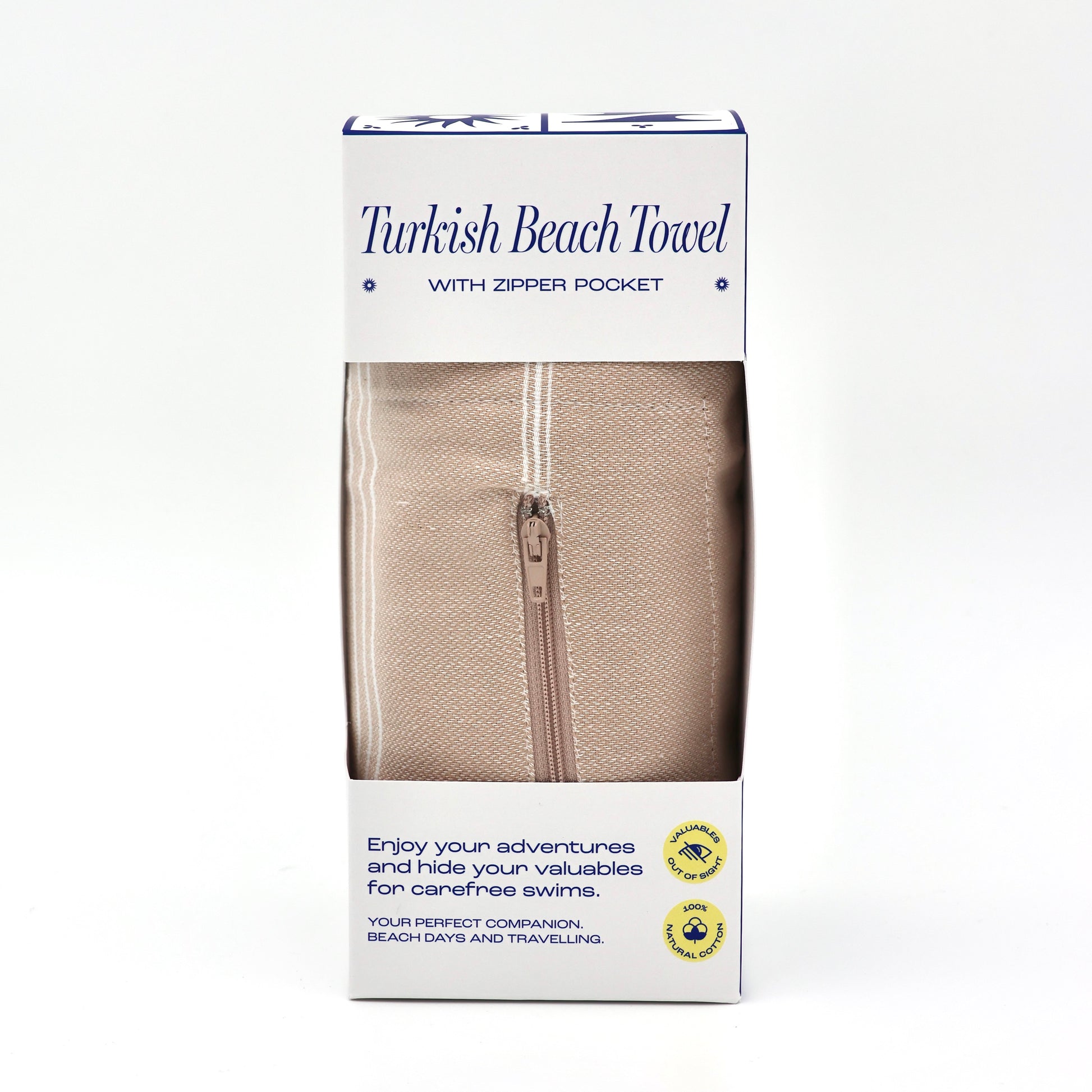 Turkish Beach Towel with Zipper Pocket - Beige