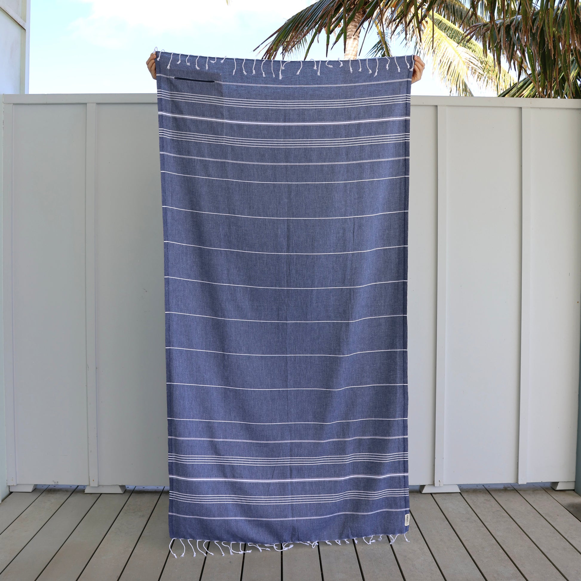 Turkish Beach Towel with Zipper Pocket - Navy